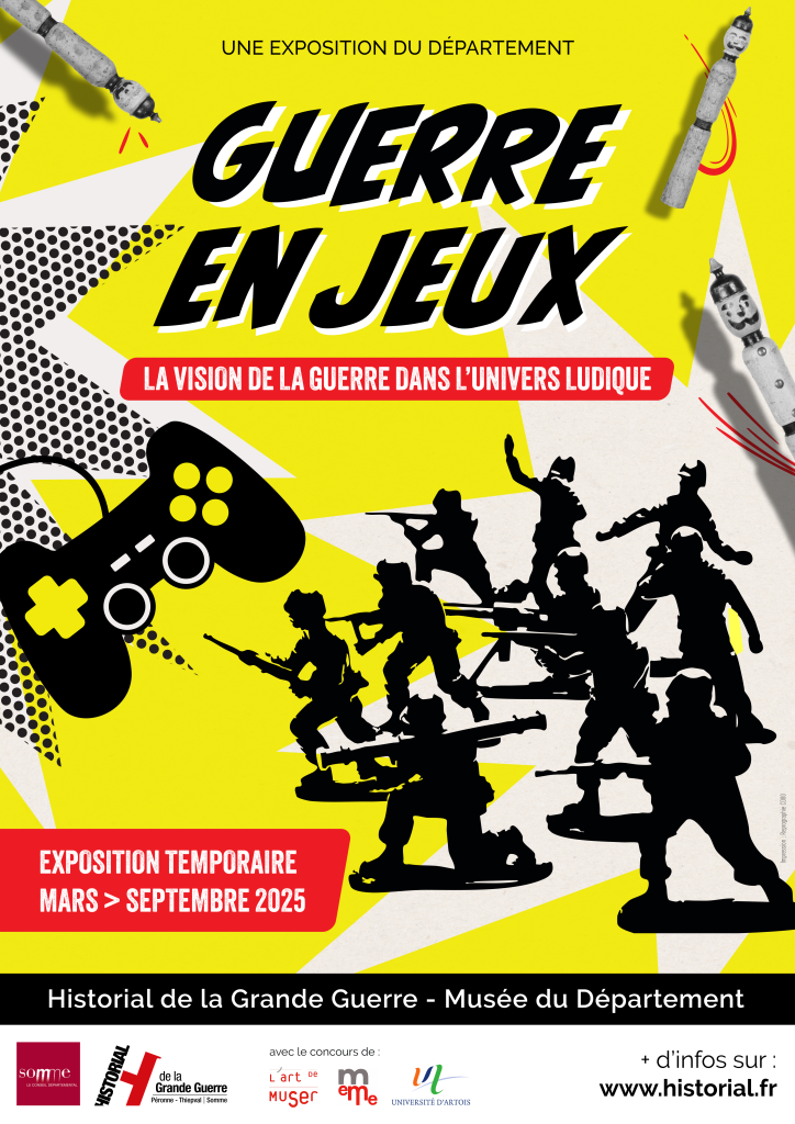 L’exposition GUERRE EN JEUX questionne la présence de la thématique guerrière dans l’univers ludique, à travers les époques, les conflits et les sociétés. Conçue en coopération avec le Master Expographie Muséographie de l’Université d’Artois, elle a pour objectif de diversifier le public de l’Historial par le biais d’une thématique intergénérationnelle.
